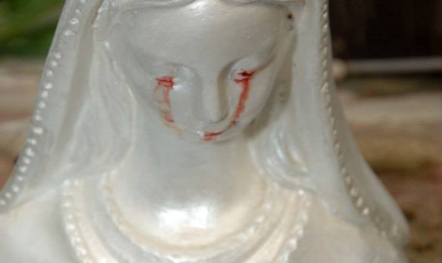 Una luce bianchissima rifulge e la Santissima Vergine Maria appare vestita tutta di bianco e col Cuore in mano, grondante sangue. Il sangue le macchiava le vesti e le macchie si ingrandivano. I Suoi occhi erano piene di lacrime. Non era contenta. Il Suo volto rivela una particolare preoccupazione mista a sofferenza materna. Ho udito la Sua voce dolcissima dire: