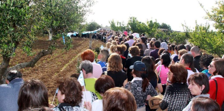 “Sia glorificata la Santissima Trinità. Io sono la Santissima Vergine della Riconciliazione, Regina della Speranza. Figlio Mio, giorno cinque si avvicina ed Io sarò in mezzo alla gente per consolarla ed esaudirla, intercedendo per essa presso il Trono di Dio. Oggi il Mio Cuore, Immacolato e Puro, promette solennemente a tutti coloro che compiranno il cammino di penitenza e riparazione nella Mia Santa Contrada, la Mia continua protezione e in modo particolare prometto che: